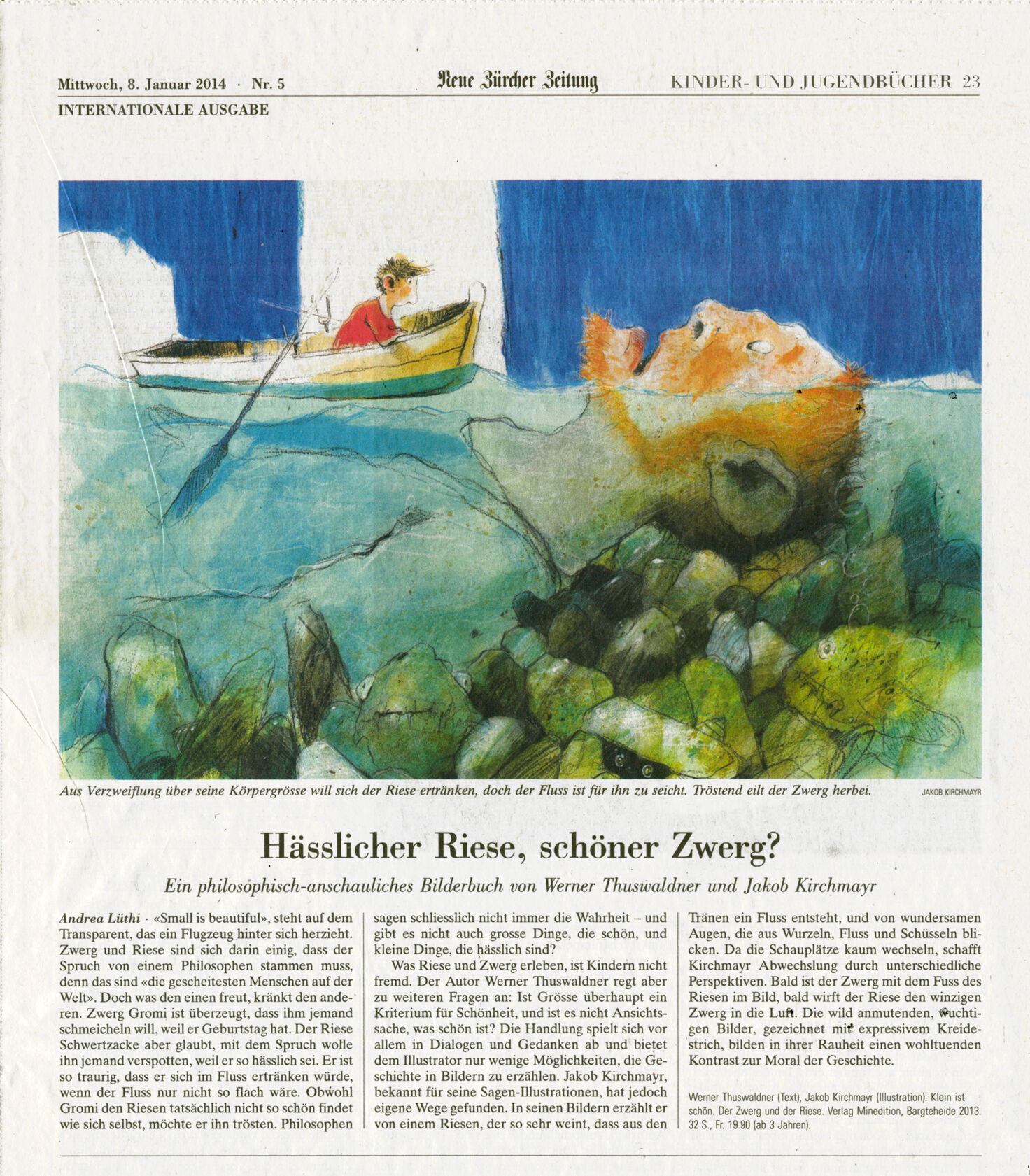 Werner Thuswaldner (Text), Jakob Kirchmayr (Illustration): Klein ist schön. Der Zwerg und der Riese. Verlag Minedition, Bargteheide 2013. 32 S., Fr. 19.90 (ab 3 Jahren).
